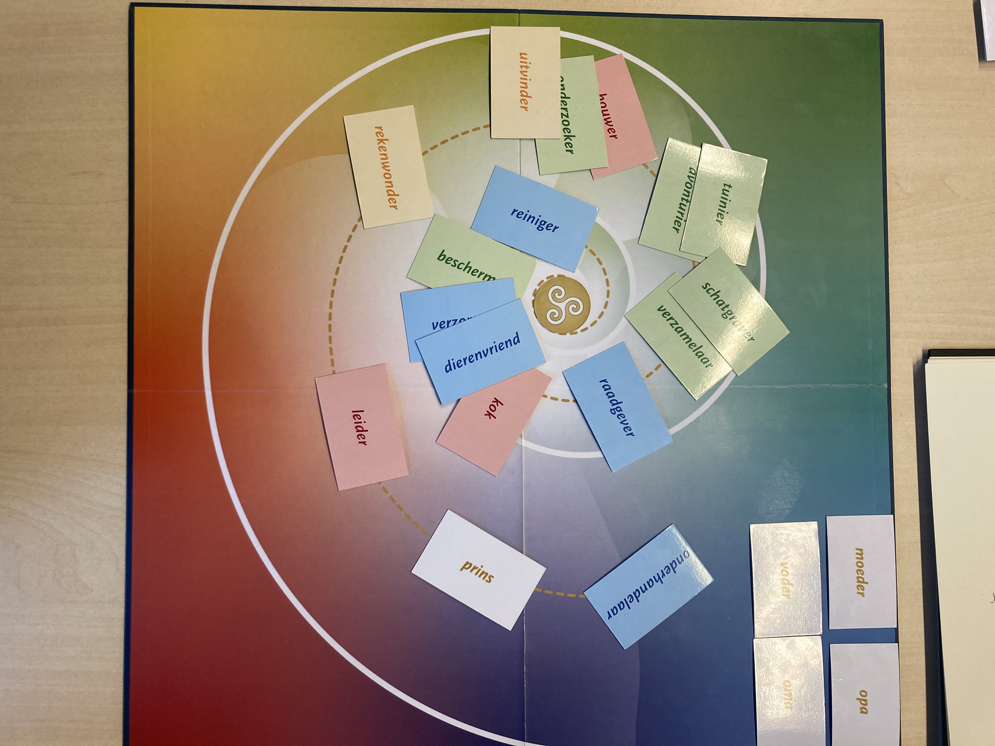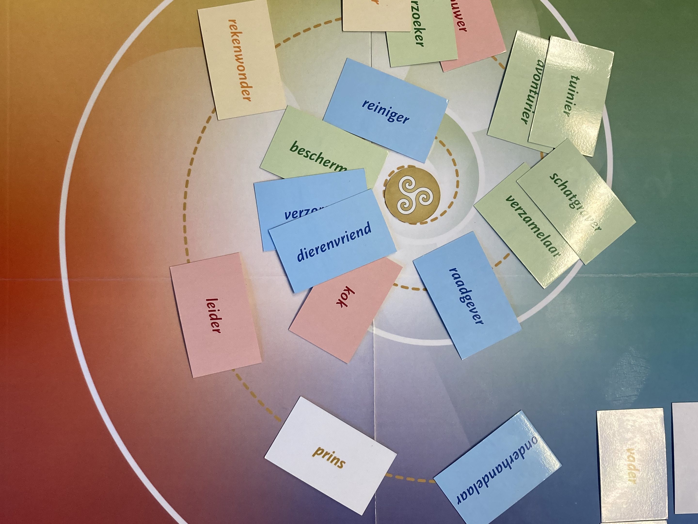 Jouw talenten komen op een spelbord in de vorm van een nautilusschelp. De nautilusschelp is een mooie metafoor voor talentontwikkeling, want het huisje van de nautilus inktvis groeit met het diertje mee naarmate hij groter wordt. Op een tweede spelbord ontdek je wat de plek is van jouw talenten en hoe zichtbaar ze zijn in de wereld: welke talenten zijn er voor jou om te kunnen ontspannen en bij jezelf te zijn en welke talenten gebruik je graag in het contact met anderen?